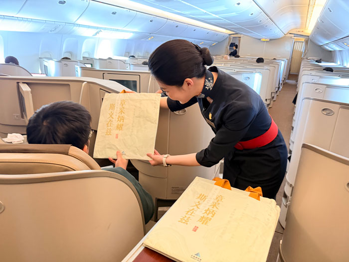 一位收到纪念品的旅客表示:“没想到在飞机上也能品读诗词,还收到了这么精致的诗集,礼物很用心,让我对传统文化又多了一份喜爱!”