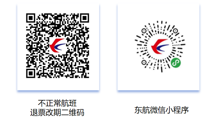 温馨提醒:您可登录东航官网(www.ceair.com)、APP、微信服务号、小程序,或致电东航客服热线95530通过AI语音自助查询航班动态,如遇航班延误或取消,也可通过上述渠道免费办理机票退票或改期。客服热线话务繁忙时,建议您优先选择以下方式办理机票退改。请通过扫描以下二维码并参考二维码内图文指引进行相应操作: