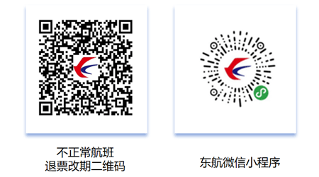 温馨提醒:您可登录东航官网(www.ceair.com)、APP、微信服务号、小程序,或致电东航客服热线95530通过AI语音自助查询航班动态,如遇航班延误或取消,也可通过上述渠道免费办理机票退票或改期。客服热线话务繁忙时,建议您优先选择以下方式办理机票退改。请通过扫描以下二维码并参考二维码内图文指引进行相应操作: