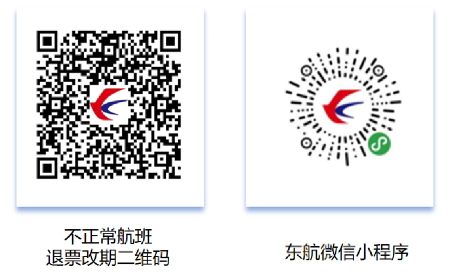 温馨提醒:您可登录东航官网(www.ceair.com)、APP、微信服务号、小程序,或致电东航客服热线95530通过AI语音自助查询航班动态,如遇航班延误或取消,也可通过上述渠道免费办理机票退票或改期。请通过扫描以下二维码并参考二维码内图文指引进行相应操作: