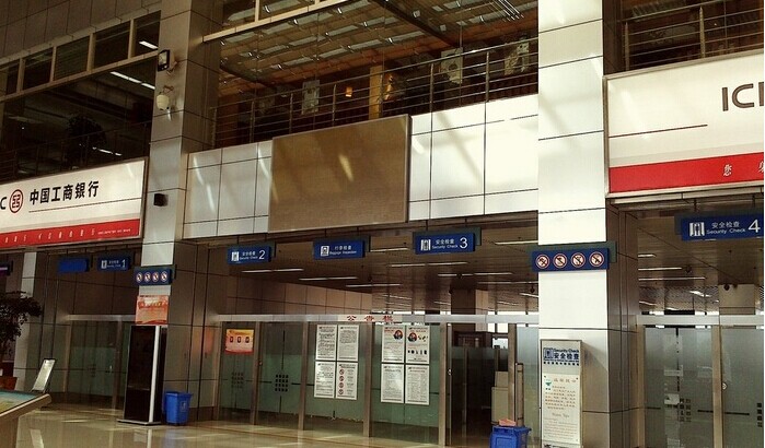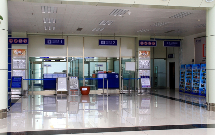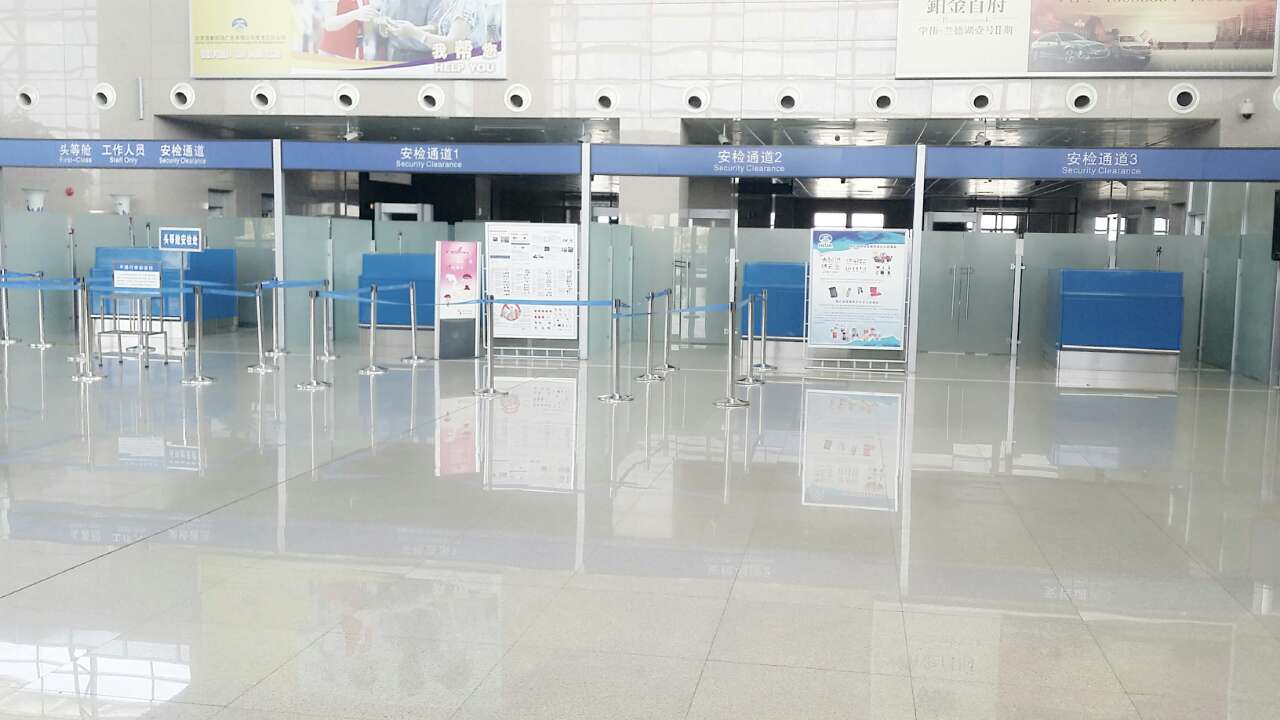 国内航班安检位于国内出发厅6号门正对面。