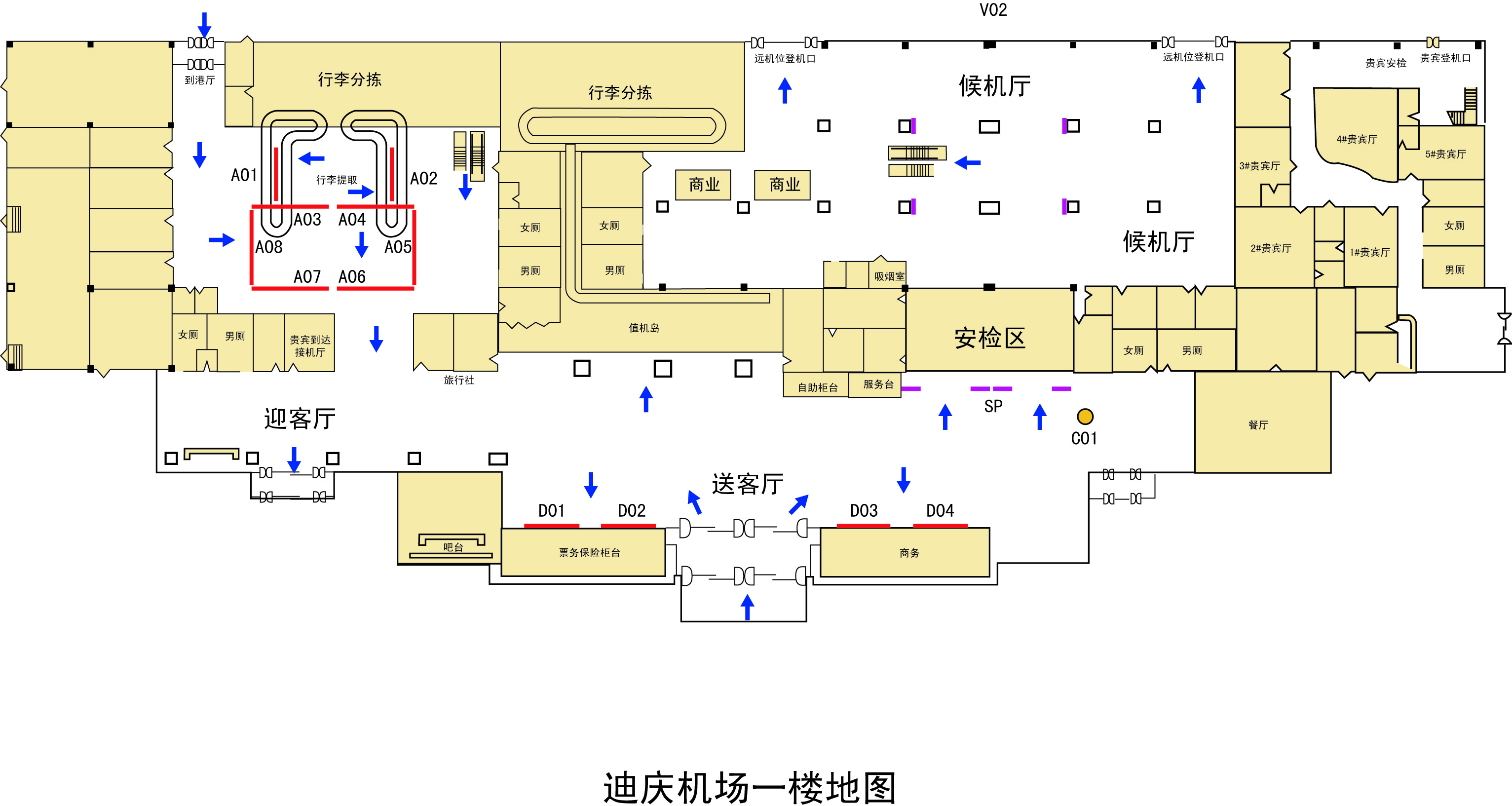 | 候机区域 | 贵宾室 | 候机大厅左侧近2号登机口 |