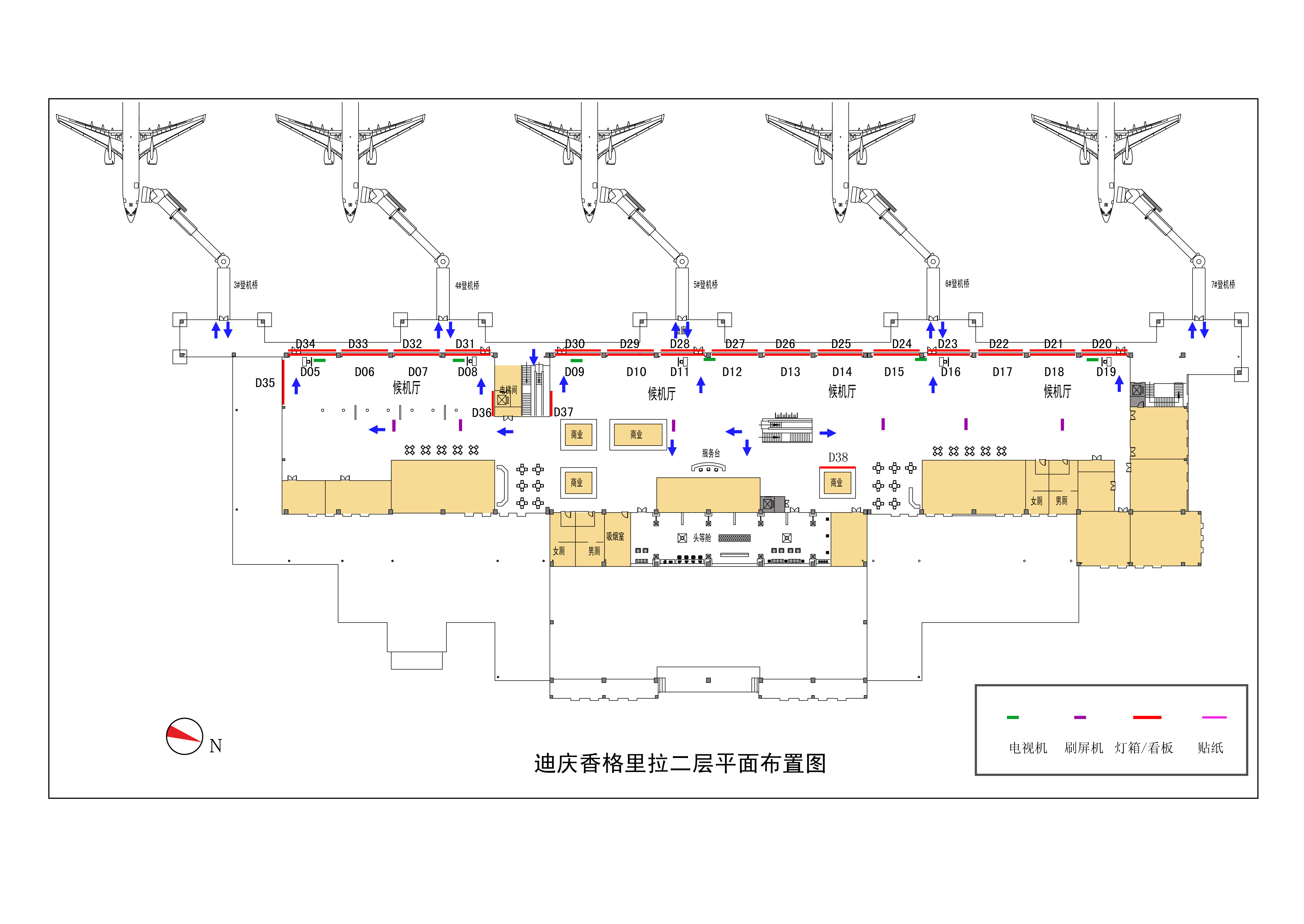 2.候机大厅D登机口及免税店: