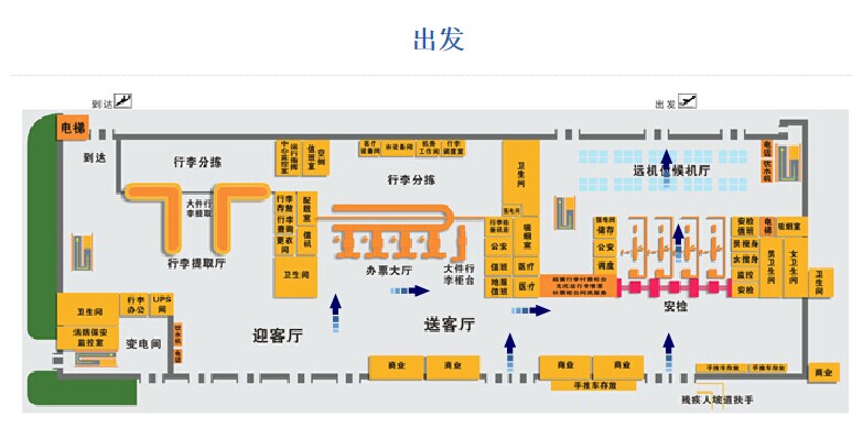 | 中转区域 | 中转值机柜台(无行李托运) | 出发层中转柜台 |