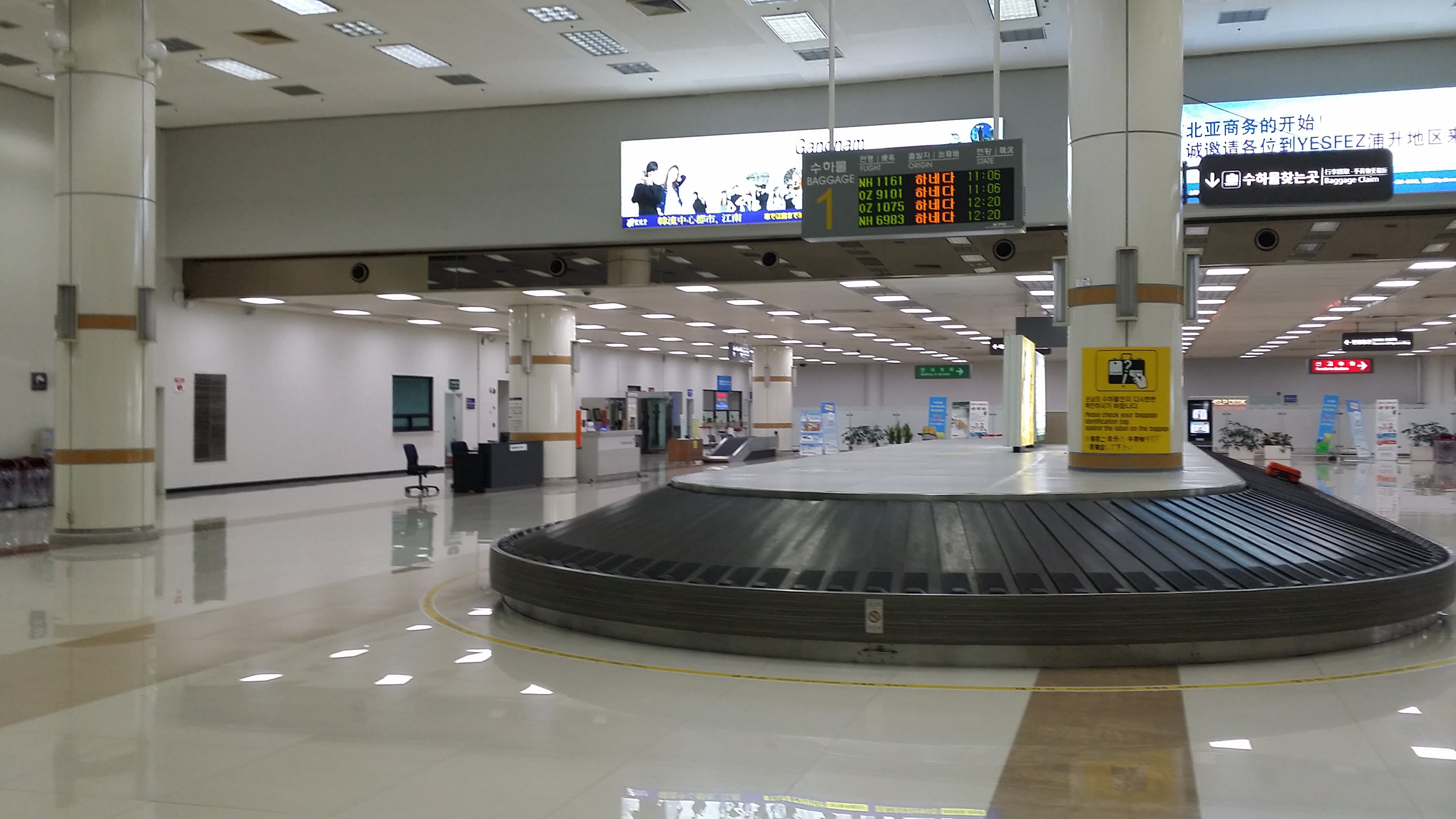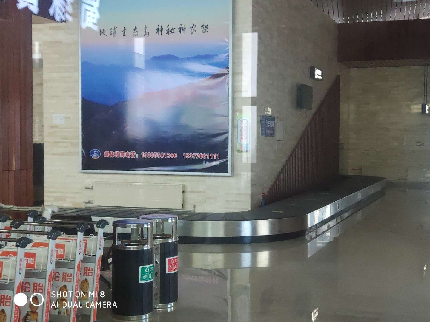 候机楼一楼到达厅行李转盘。