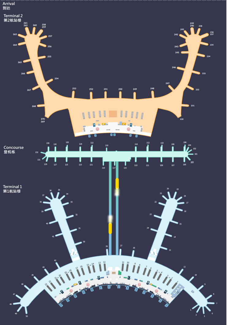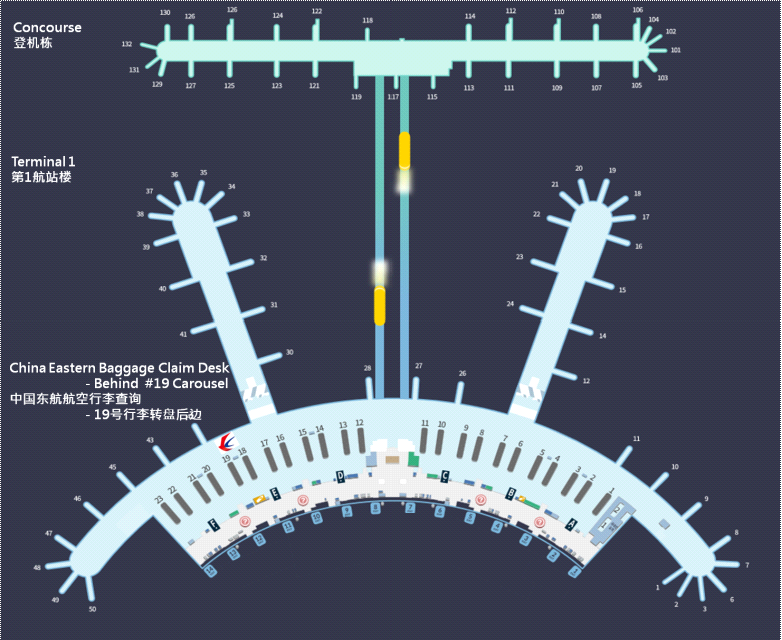 | 到达区域 | 行李转盘 | 候机楼一楼到达厅 |