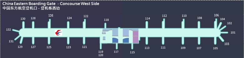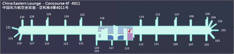 通过安检后,隔离区左侧设有头等舱/金银卡休息室(东航头等舱/金银卡旅客可使用)。